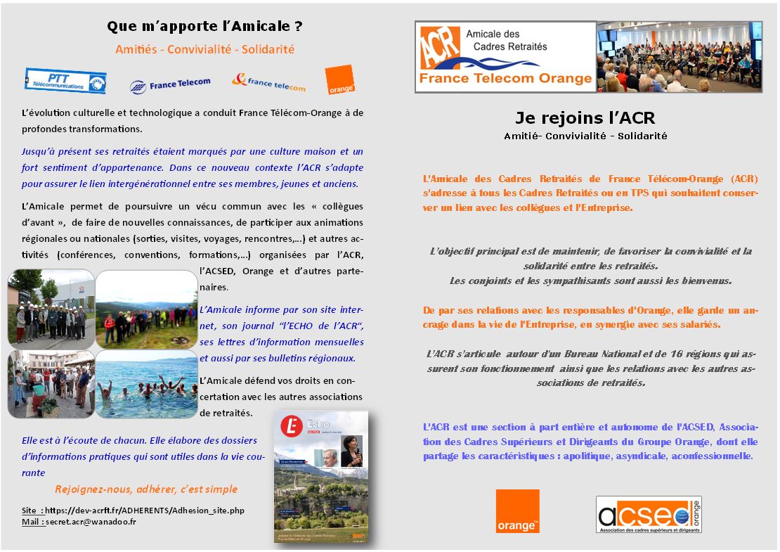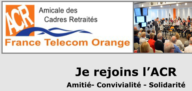 - Nos contacts avec Orange restent un sujet important, suite aux évolution récentes de notre ancienne entreprise il a fallu renouer tous les contacts. Un référent ACR vient d'être désigné ... (Voir prochainement en pages adhérents)